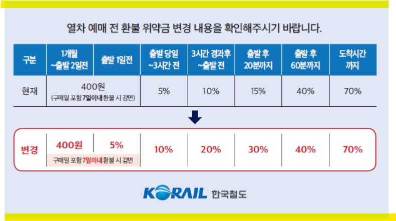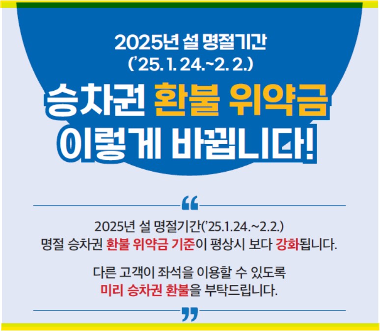 - 명절 승차권 환불 위약금 기준이 평상시 보다 강화.